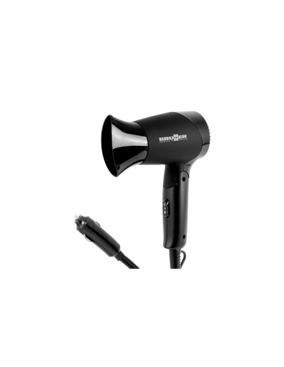 Utilissimo asciugacapelli 12V da viaggio. Design moderno con manico pieghevole salvaspazio. Involucro in resistente materiale plastico. Completo di interruttore ON/OFF, spina per accendisigari e becco per la piega staccabile. La fornitura comprende una pratica custodia per il trasporto.