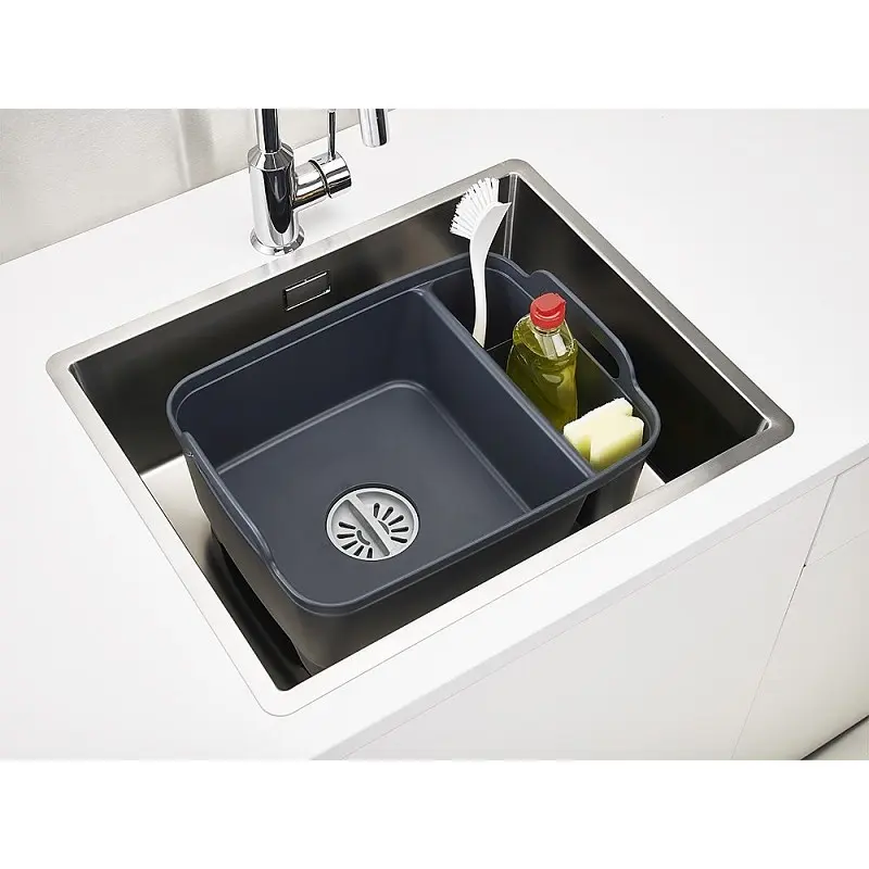 Per gli amanti del campeggio questo lavello portatile in polipropilene è la soluzione ideale per lavare piatti e stoviglie o verdura e frutta quando siete in vacanza. Grazie al suo tappo è facilissimo da riempire e da svuotare. Il lavello da campeggio in polipropilene JOSEPH è comodo perché nel suo design innovativo è stato creato un vano porta oggetti dove tenere in sicurezza e in ordine detersivi o altro di cui avete bisogno per le vostre pulizie dei piatti in vacanza. Si inserisce facilmente ad un lavello o ad un secchio cosi da poterlo usare in qualsiasi situazione in cui potete trovarvi tipo una gita con gli amici. Troviamo sempre uno spazio limitato intorno a un lavandino. Questa pratica e comoda ciotola da utilizzare per il risciacquo o il lavaggio di stoviglie, ha un comodo vano portaoggetti separato con spazio per spazzole, spugne e distributori di sapone. Tappo integrato che permette di svuotare la vaschetta di risciacquo senza doverla sollevare o spostare. Sotto il tappo, c'è una griglia piccola che consente di scaricare l'acqua, non lasciando passare grossi pezzi di cibo che possono bloccare il lavandino così da evitare sporco e dispersione di materiale. Facilmente trasportabile grazie alle due grandi maniglie che consente un comodo trasporto della ciotola.
