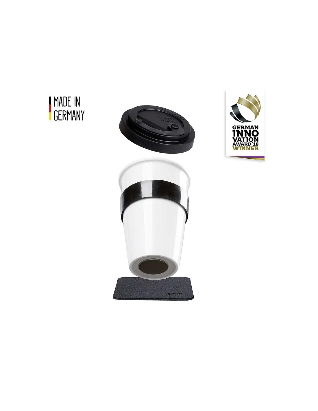 Tazza magnetica in porcellana TO-GO-CUP molto stabile di colore bianco con sottobicchiere nero. Completato con i cuscinetti metallici in nano-gel effetto pelle, questa tazza si può installare in qualsiasi parte del camper roulotte o barca senza rischi di caduta accidentale con conseguenti rotture. I cuscinetti in nano-gel sono lavabili, rimovibili senza lasciare residui e riutilizzabili. La striscia di metallo silwy è necessaria per lo stivaggio a parete/soffitto. Prodotto molto pratico e utile per gli amanti della nautica. Uso previsto non utilizzabile in microonde, non adatto al congelamento, Lavabile in lavastoviglie solo in modalità ECO. Conservare in posizione verticale nell'armadio con i tappetini in silwy o il tappetino in metallo silwy.