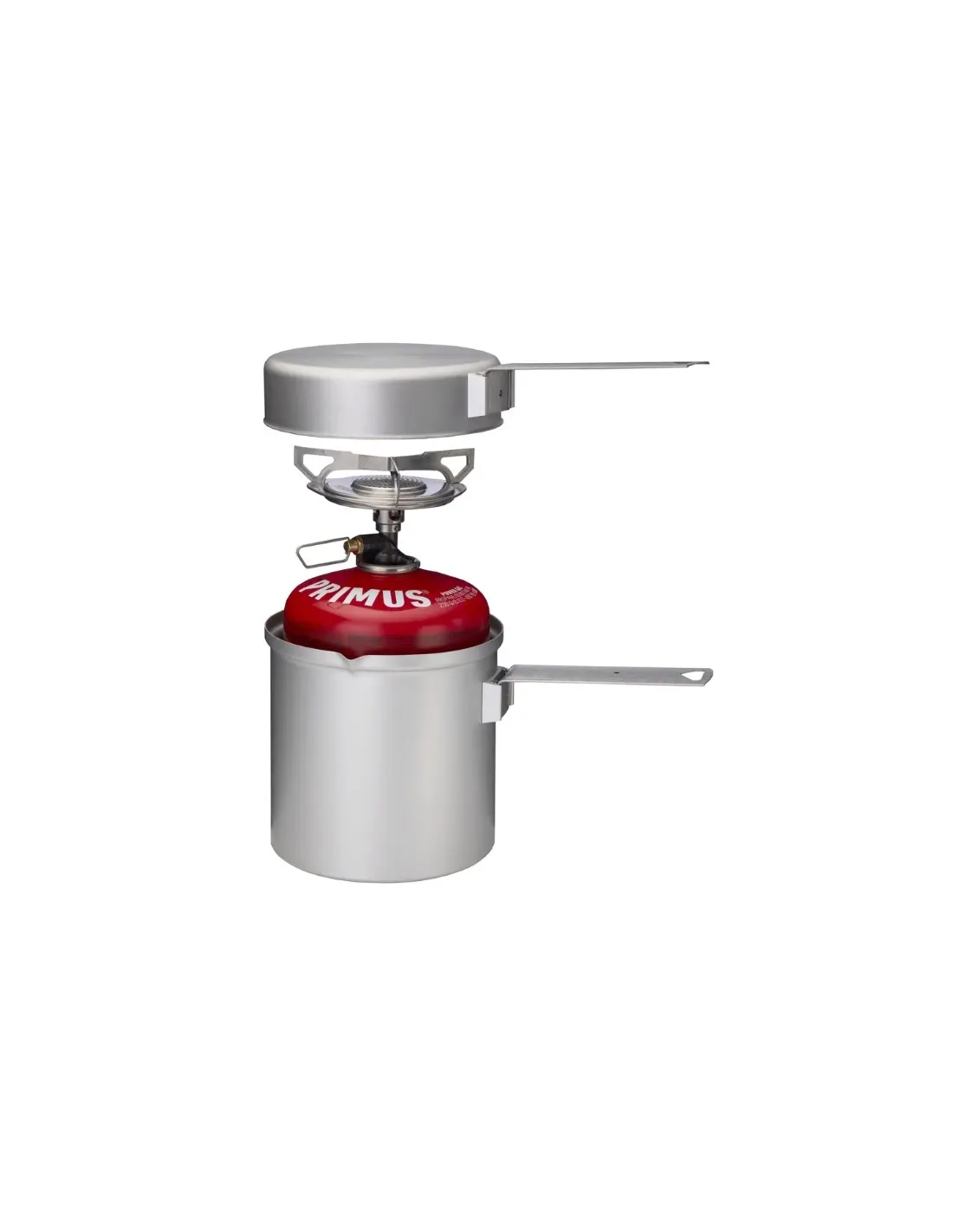Essential Trail Kit è la cucina da trekking perfetta di PRIMUS, azienda innovativa per le attrezzature da trekking. Progettato in Svezia e realizzato a mano in Europa, questo kit ha spazio per tutto ciò di cui hai bisogno per cucinare durante le tue giornate di trekking in montagna con gli amici. Facile da riporre, il fornellino Essential Trail Stove va inserito con la cartuccia del gas da 230 g all'interno della pentola da 0,5 litri: una cucina da campo leggera e altamente comprimibile pronta in meno di un minuto. Il bruciatore fa bollire un litro d'acqua in tre minuti e mezzo con la sua fiamma da 2.500 W e il baricentro basso grazie alla tecnologia del bruciatore a flusso laminare garantisce una superficie di cottura stabile. Basta far bollire l'acqua per la pasta o il pasto liofilizzato nella pentola. Friggi l'uovo della colazione nella padella o nel coperchio, che ha un rivestimento in ceramica antiaderente. I manici rimovibili possono essere configurati in diversi modi per facilitare la cottura o per tenere tutto insieme quando il kit viene riposto. Viene fornito con borsa a rete per il trasporto.