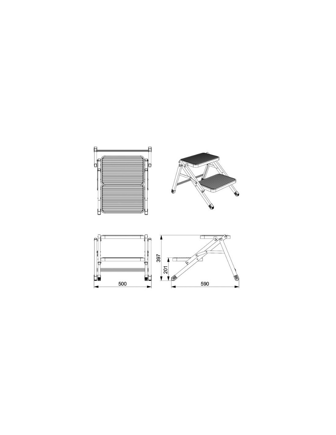 Gradino doppio antiscivolo in acciaio.