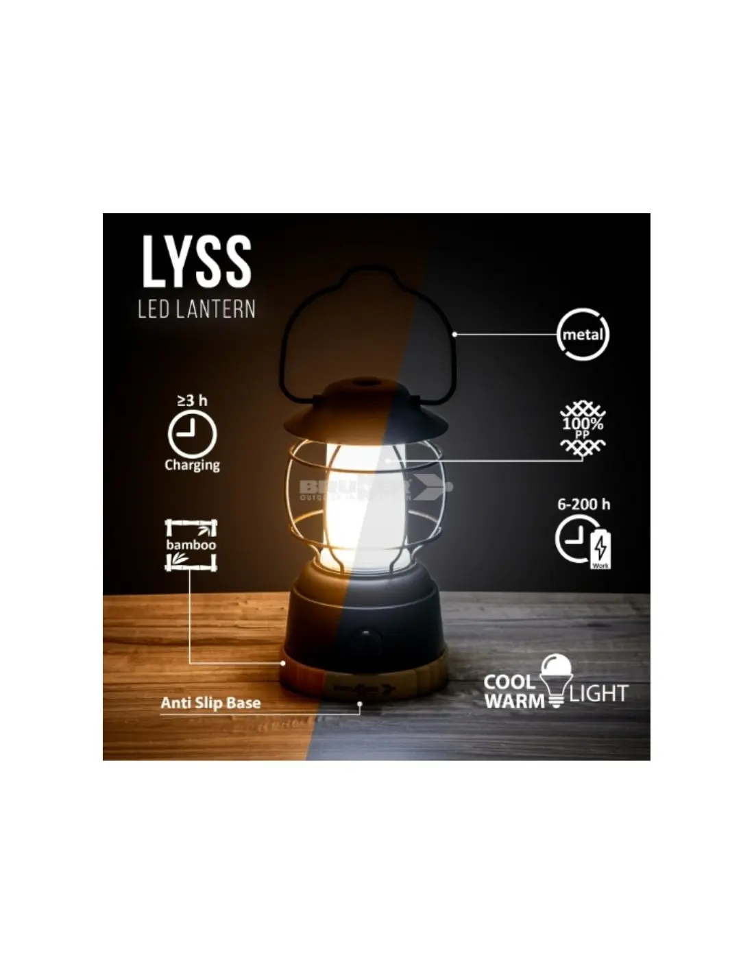 Lanterna a LED da campeggio con un elegante design realizzata con resistente struttura in metallo verniciato, base in bambù e schermo traslucente in materiale plastico. Accensione tramite interruttore ON-OFF dimmerabile con 2 modalità di illuminazione una a luce calda ed una a luce bianca. Batteria ricaricabile integrata agli ioni di litio con cavo USB in dotazione. Utilizzabile in molteplici applicazioni.
