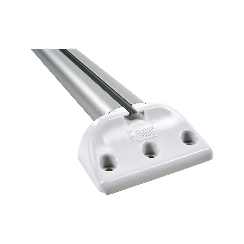 Pratica barra portatutto da utilizzare come bagagliera in estruso di alluminio. La barra può essere tranquillamente accorciata con un semplice taglio con un seghetto. Si appoggia al tetto del camper o della caravan senza problemi. Ottimo come sistema di supporto di pannelli solari o bagagliere.