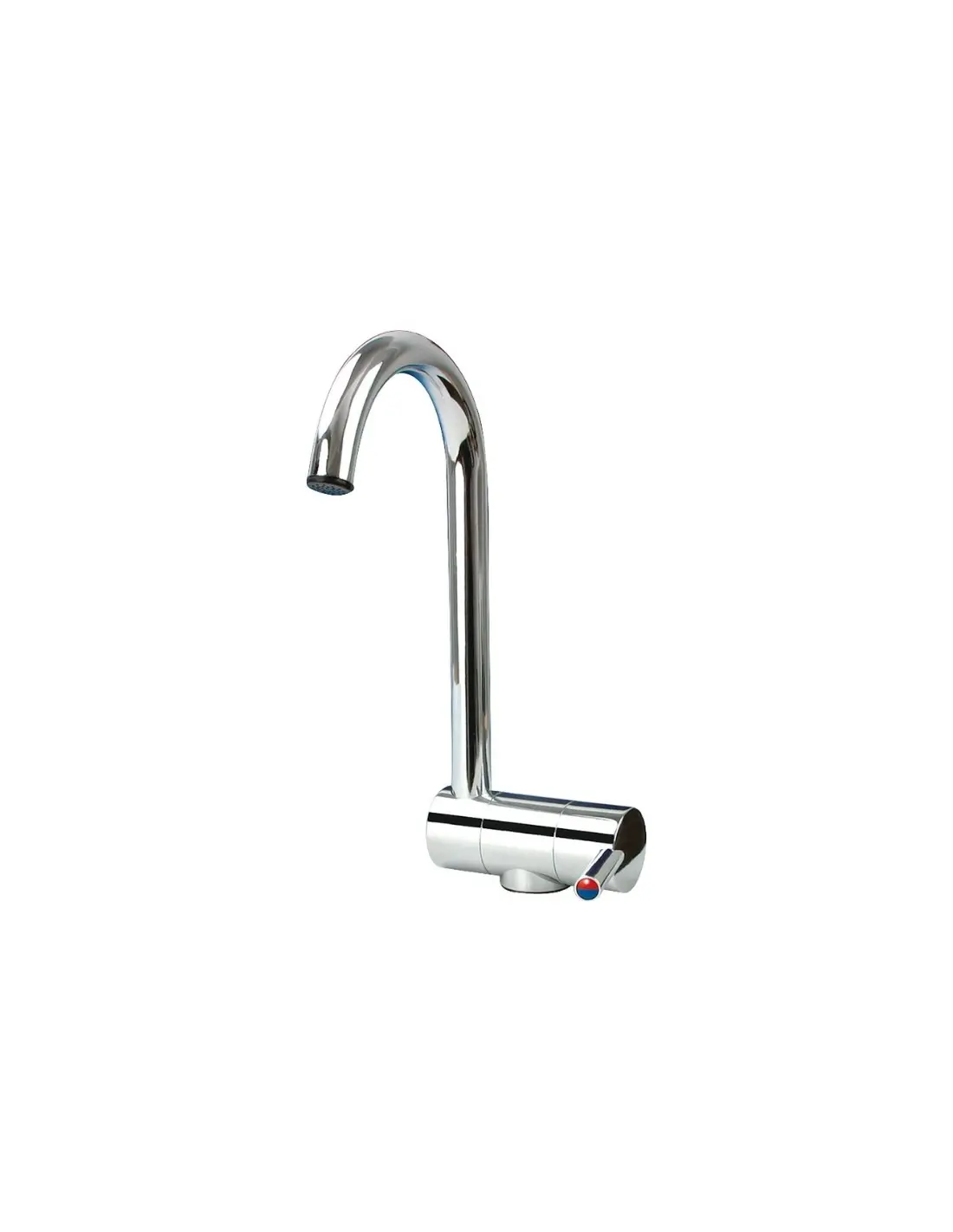 Modello Trend rubinetteria di design con interruttore e collo altro con bocca orientabile verticalmente. Altezza complessiva ridotta di 4 cm per l'installazione in lavelli con piano in vetro.