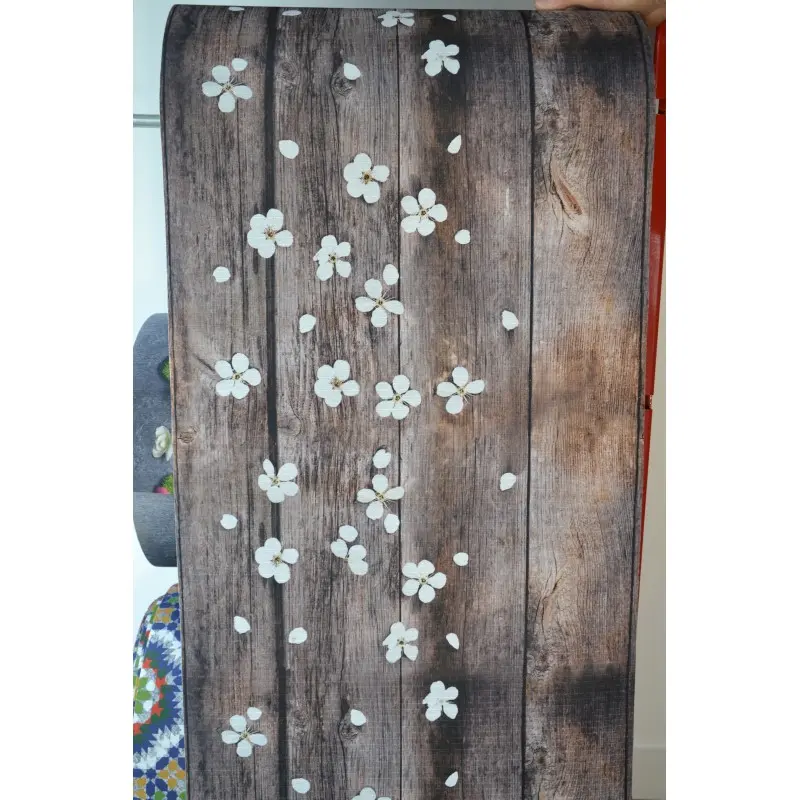 Un tocco di natura in casa. Tappeto da cucina con disegnati delicati petali di ciliegio soffiati dal vento per cucinare sempre con la primavera in casa.